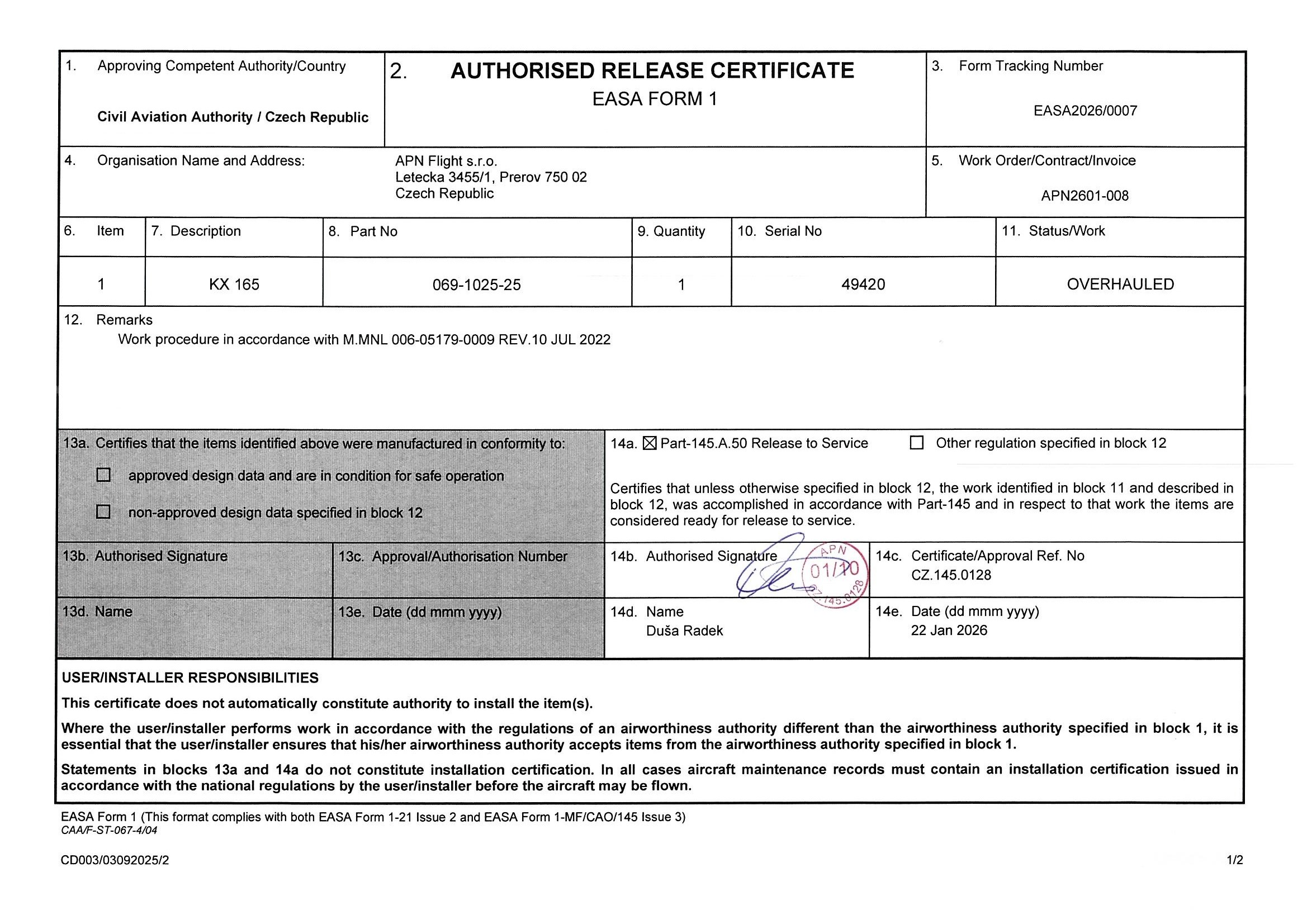 OH - EASA Form 1